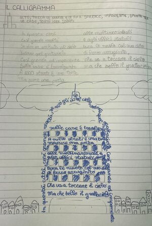 Il calligramma è una poesia scritta in modo da formare un disegno con le parole che la compongono: sarà quindi il disegno a farci capire il tema e, per leggere la poesia, dovremo "seguirlo".